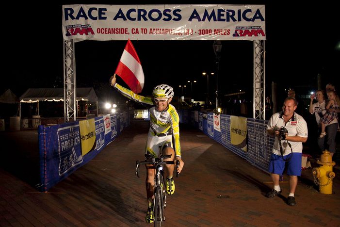 Mit einer sensationellen Leistung konnte sich Christoph Strasser beim RAAM 2011 seinen Traum nicht nur erfüllen, sondern ihn sogar übertreffen: Nach 8 Tagen, 8 Stunden und 6 Minuten überquerte er als jüngster Sieger die Ziellinie in Annapolis. Seine Durchschnittsgeschwindigkeit war die bis dahin dritthöchste in der 30-jährigen Geschichte des RAAM, das übrigens im gleichen Jahr – nämlich 1982 – als Christoph geboren wurde, zum ersten Mal ausgetragen wurde.