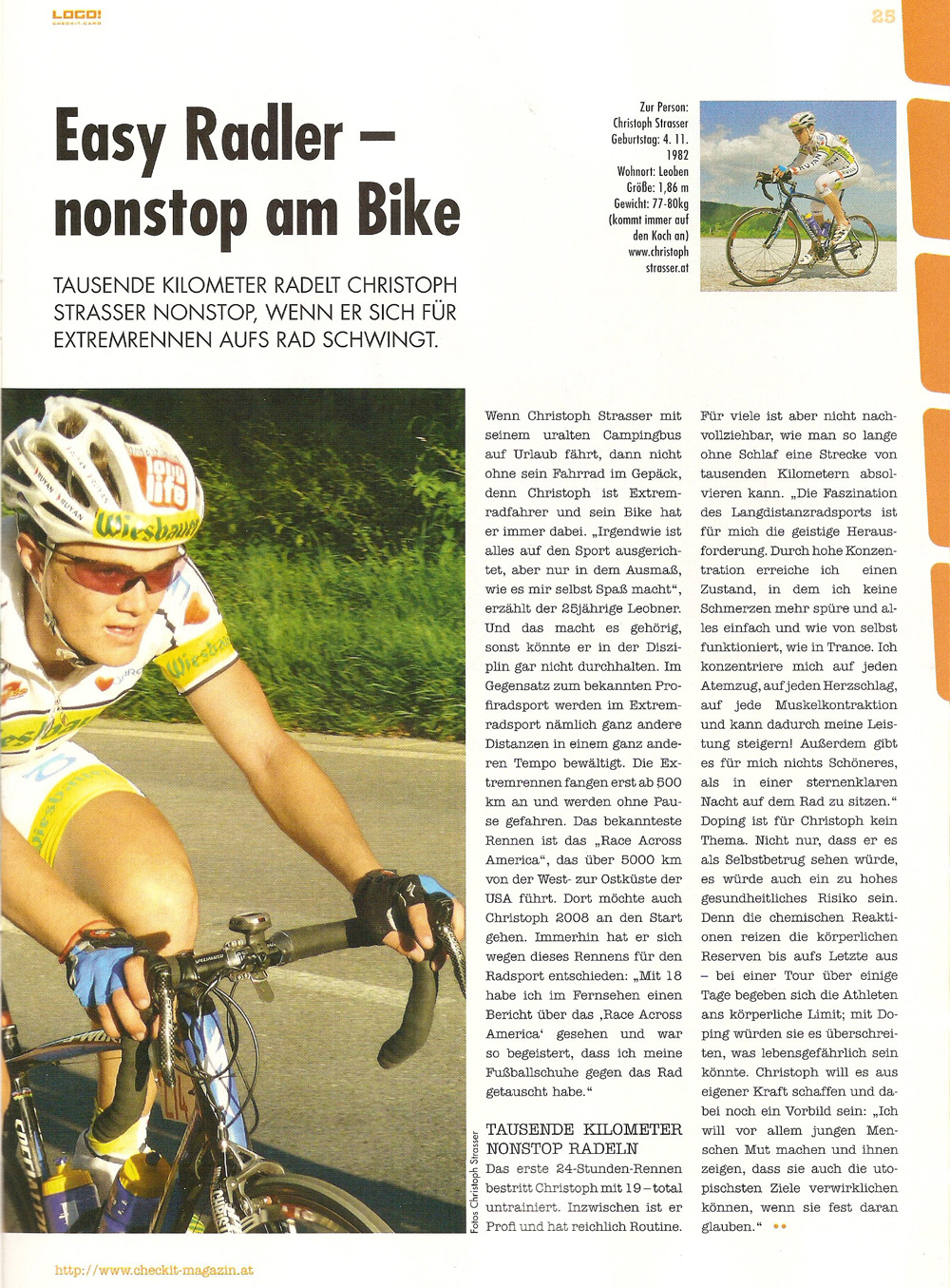 Die internationale Fachwelt staunt über ihn: Christoph Strasser aus Kraubath ist erst 24 Jahre alt - aber auf Langstrecken bereits absolute Weltspitze